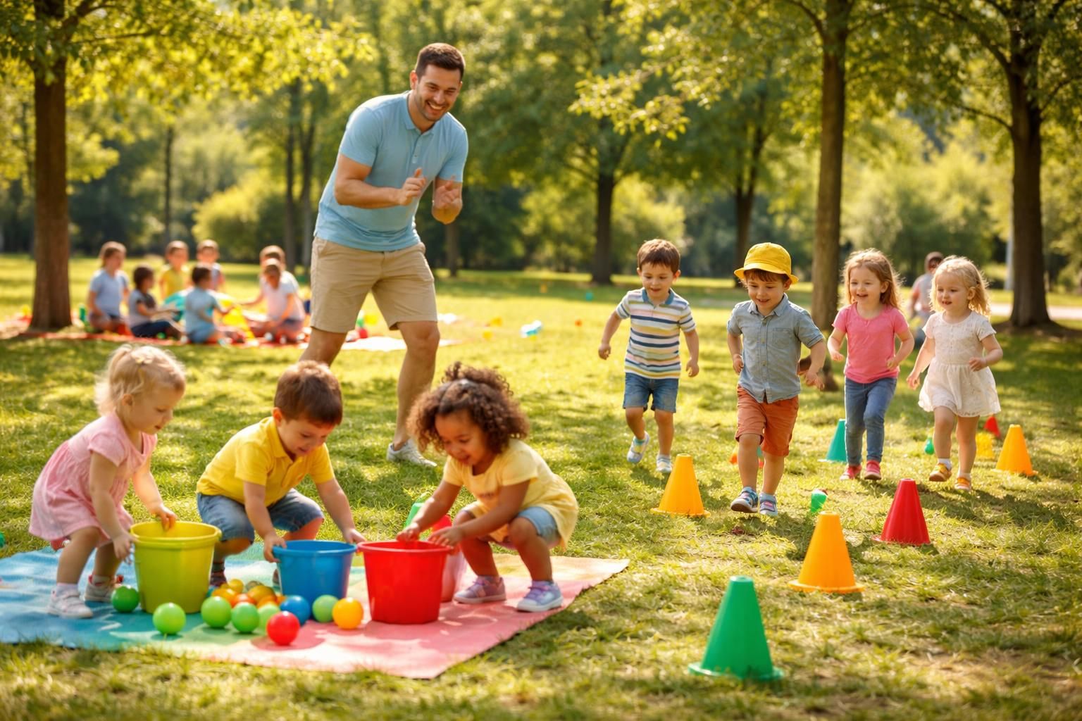 - Éveil physique : Les jeux actifs encouragent les enfants à mouvoir leur corps, favorisant ainsi leur motricité fine et globale.